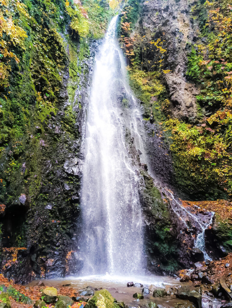 三段の滝になっており、その落差は合計で72mにもおよびます。真下からは上の二段は見えませんが、見上げるとその高さに圧倒されることでしょう。